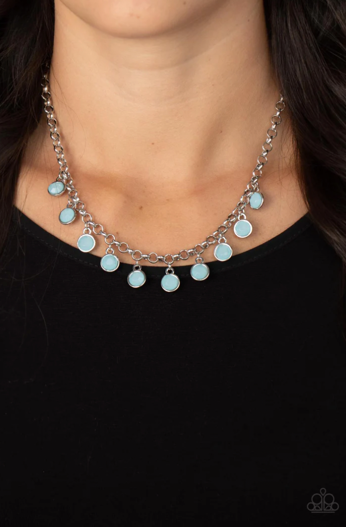 Featuring a milky shimmer, opaque Spun Sugar crystal-like beads are pressed into simple silver settings as they dance below the collar for a colorfully carefree look. Features an adjustable clasp closure.